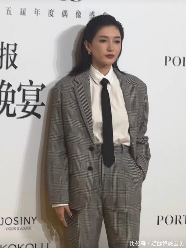 江疏影则是穿了一套格子西装,打着领带亮相,这种中本性调在本年的红毯上可谓异常零散。