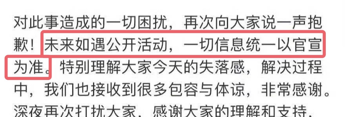 而肖战方临了亦然向粉丝们谈歉,暗示对环球形成困扰对不起,并十分不绝环球的失败,因此也但愿能够在贬责流程中,环球能够多些包容和体谅。临了暗示,翌日但愿环球一切信息都以官宣为准。这句话的潜台词很臆想便是,下次再有这么的事情,他们不会再作念任何赔偿处理了。