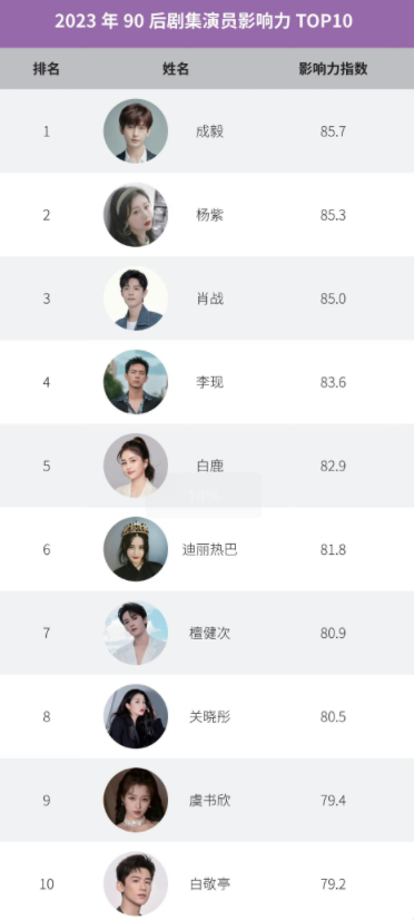 诸君读者,看到90后剧集演员影响力榜单后,你以为这份榜单的排行合理吗?