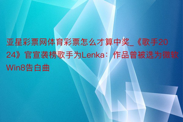 ?《歌手2024》官宣袭榜歌手为Lenka:作品曾被选为微软Win8告白曲 皇冠足球信用盘源码
